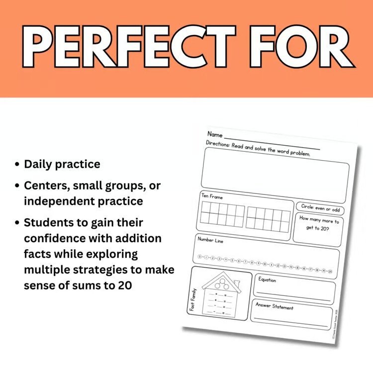 Perfect for centers, small groups, or independent practice—your students will gain confidence with addition facts while exploring multiple strategies to make sense of sums to 20!