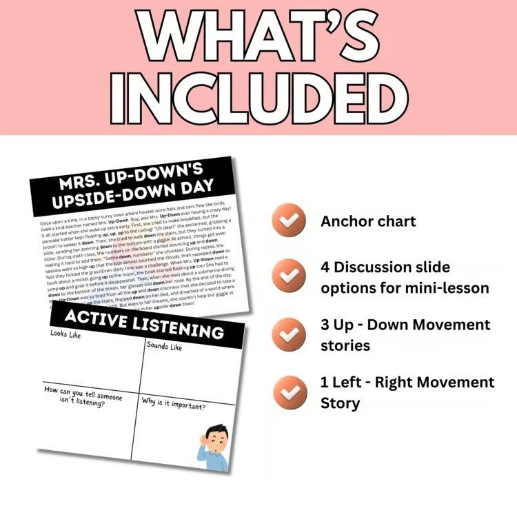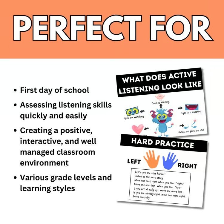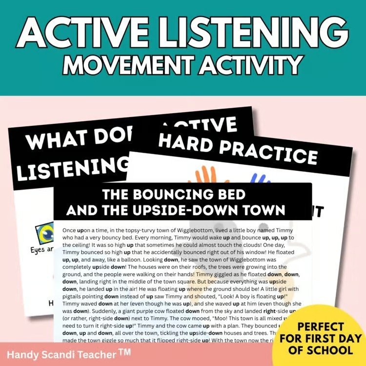 This Active Listening Story Activity gets your students moving, engaged, and excited from the moment they walk in the door. As you read a captivating back-to-school story, students stand up or sit down when they hear specific keywords.