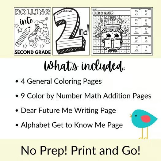 2nd Grade First Day Fun: Coloring, Writing, and Math Review!