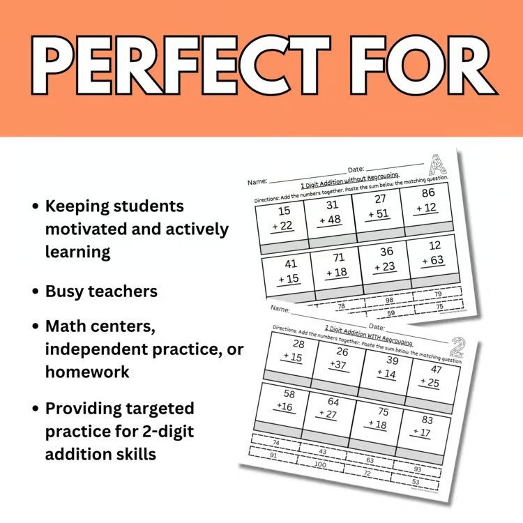 Transform your math lessons with this engaging cut and paste activity designed to help students master 2-digit addition within 100!
