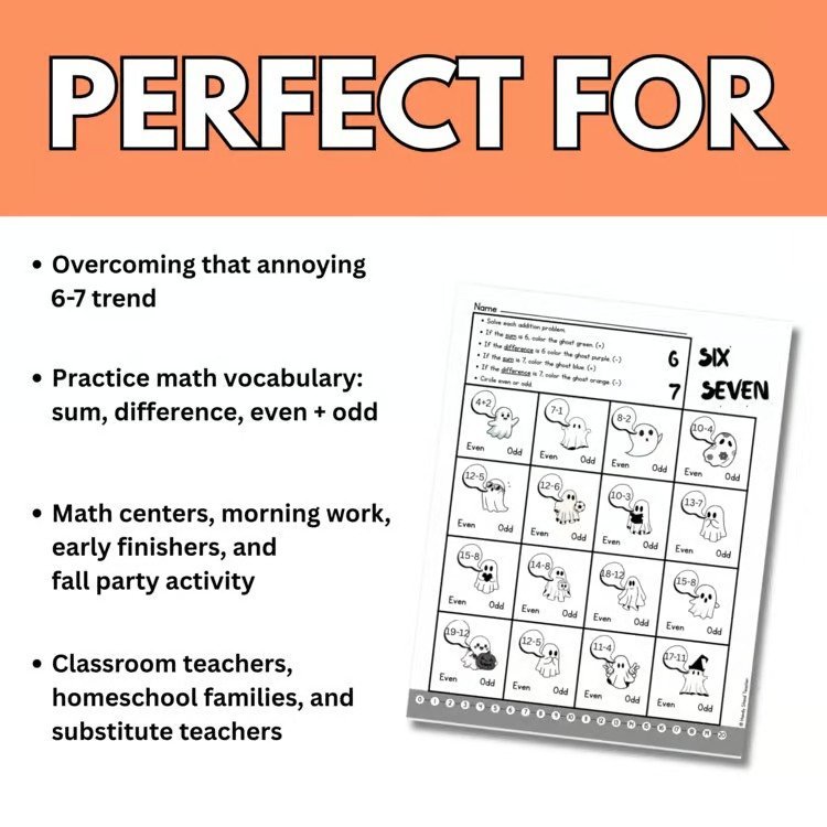 Each activity connects to the hilarious â6â7â moment students love â but with an academic twist! Use them for math centers, sub plans, morning work, early finishers, or seasonal review.