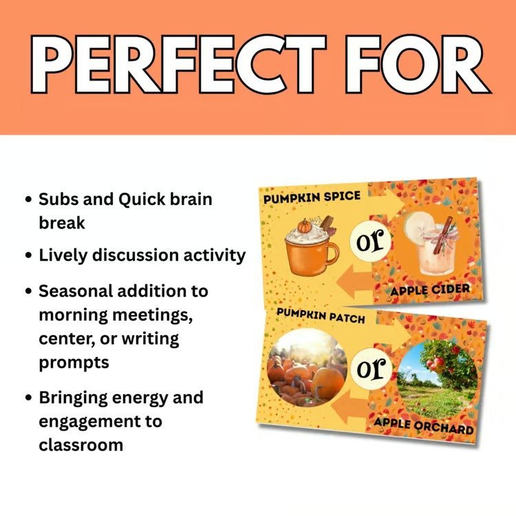 This or That Movement Game: Fabulous Fall Edition is a fun, interactive way to combine physical activity with classroom learning. Perfect for a quick brain break, a lively discussion activity, or a seasonal addition to morning meetings, centers, or writing prompts, this game brings energy and engagement to your classroom.